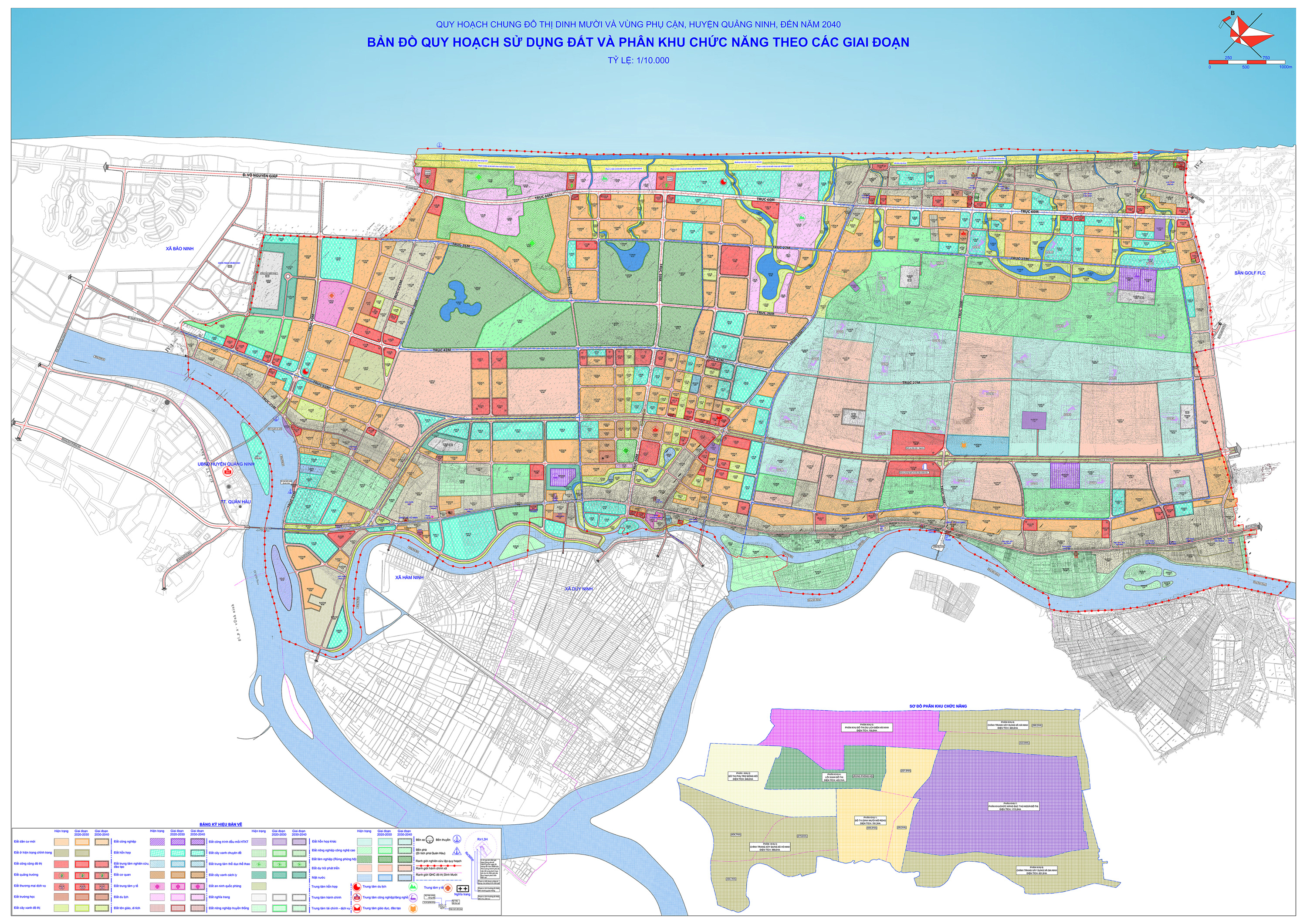 Bản đồ quy hoạch sử dụng đất và phân khu chức năng theo các giai đoạn đô thị Dinh Mười và vùng phụ cận, huyện Quảng Ninh, đến năm 2040 (2)